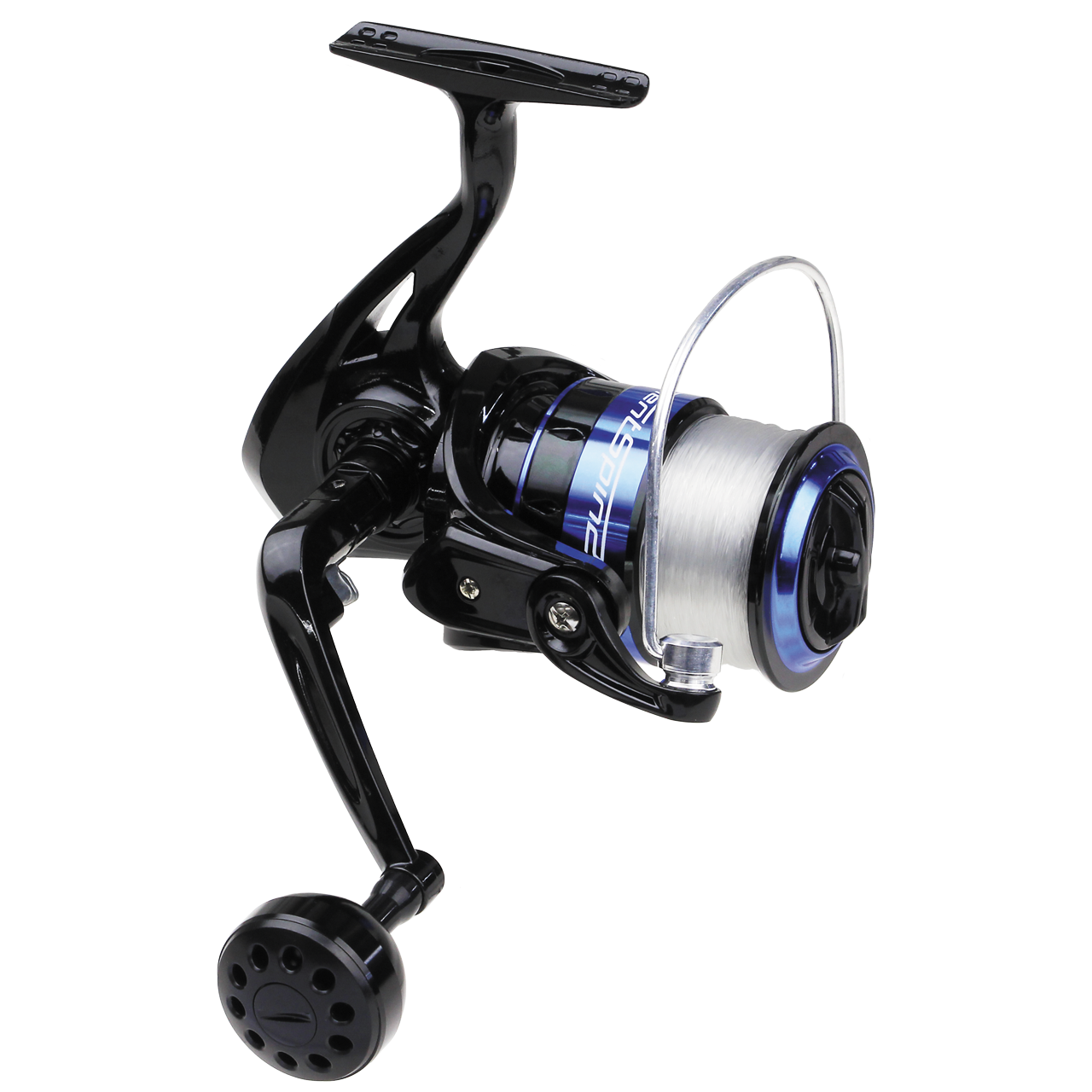 1000番から6000番までの6サイズをラインナップした、ナイロンライン付きのスピニングリール。