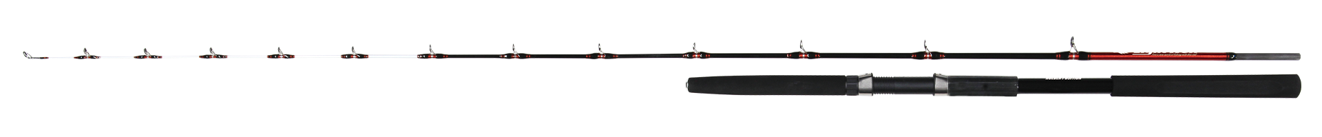 ハイパワー2ピース船竿。 グラス100%の粘強ブランクス。 視認性の良いホワイト塗装。 耐久性と強度のある多点オールダブルフットガイド仕様。 バッド継の粘強船ロッド。