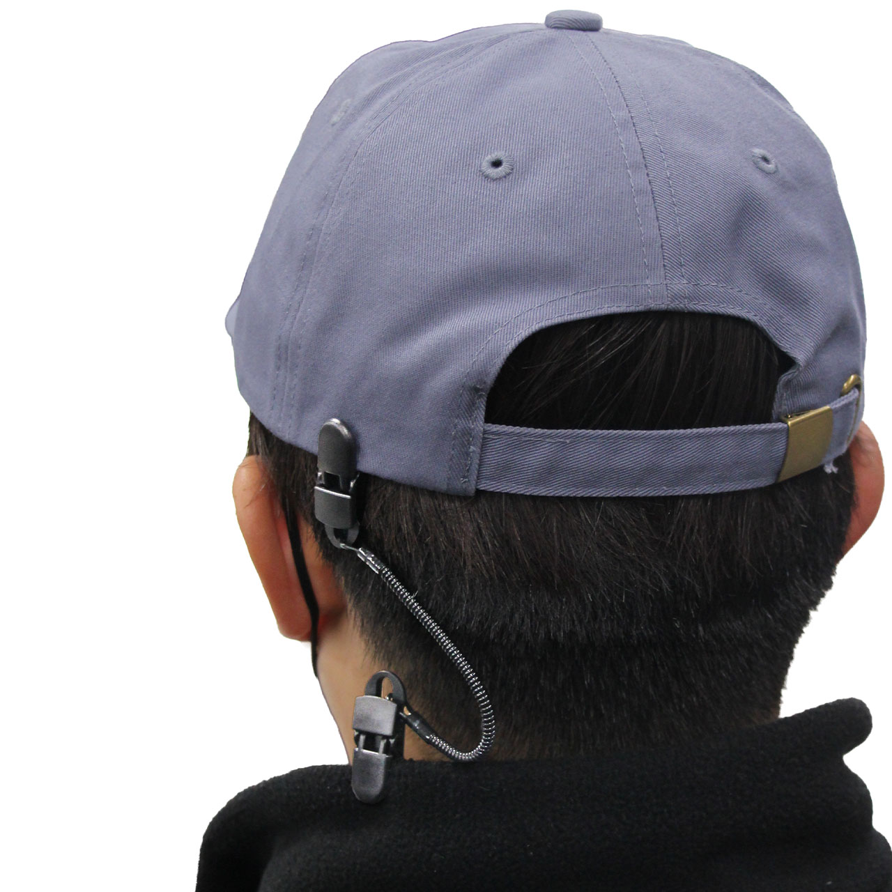 帽子とウエアの襟などをキャップキーパーで留めておくと、強風時でも帽子をなくしません。 クリップ先端から先端まで約19cm。